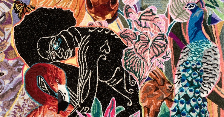 Drawing on her Jamaican heritage and connecting with a global sisterhood, Simone Elizabeth Saunders creates imposing large-scale narratives using only a punch needle and a tufting machine.