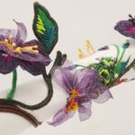 I love to make three-dimensional embroidery effects with stitch and use many traditional techniques to achieve this such as stumpwork, turkey work, French knots and 3D beading.
