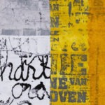 I work very much in a cycle of construction-deconstruction-reconstruction. For my White Wall series I am printing letters and text in black and then ‘erasing’ it again by over-painting many times with white acrylic paint and sanding certain areas to reveal what is beneath the surface, thereby simulating the effects of time and the elements on the distressed walls.