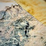 I work with natural materials such as plants, mud and powders, and I use rainwater or mountain water to allow the elements to influence the outcome. Fabrics are left outside to interact with the sun, wind and rain, creating unpredictable and organic patterns.